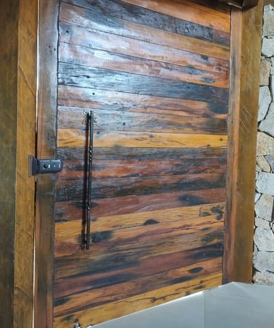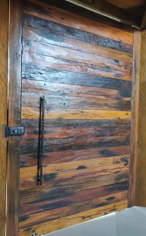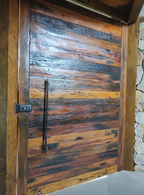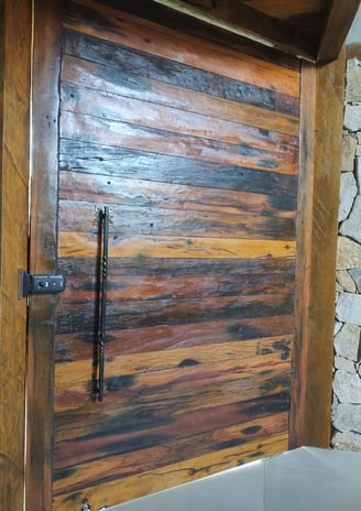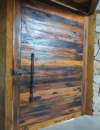 Na CAP Fabricações Rústicas somos especialistas em portas, janelas, e marcos sob medida, feitos com madeira de demolição. Dormente reaproveitado de linha ferroviária.